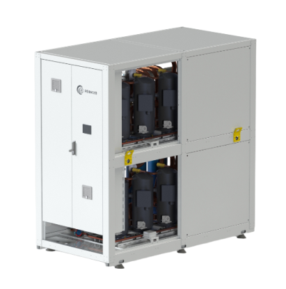 Спиральные компрессоры (от 1 до 12): устанавливаются одиночно, тандемом без отделения масла или до пяти с отделением масла и электронным контролем уровня в картере в один независимый контур охлаждения. Для каждого компрессора установлен нагреватель картера и термостат на линии нагнетания. Двигатель оснащен защитным реле от перегрева обмоток.