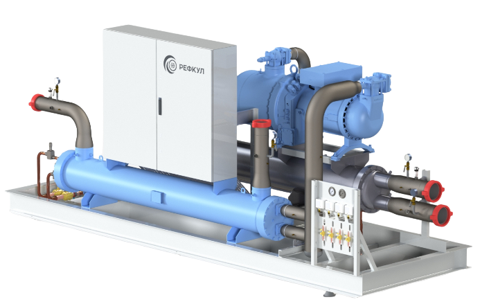 Винтовые компрессоры: устанавливаются по одному в независимом холодильном контуре, для каждого установлен нагреватель картера, электродвигатель оснащен реле защиты от перегрева обмоток и блоком мониторинга с контролем уровня масла.
