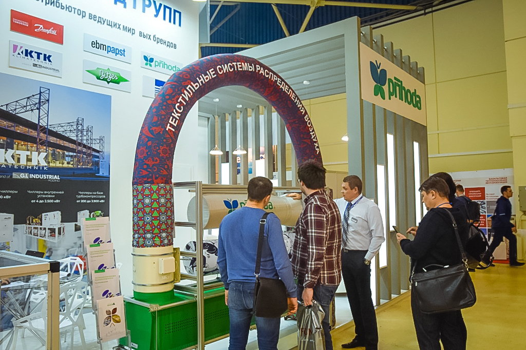 Завод «РЕФКУЛ» гарантирует надежность работы агрегатов и качество всего спектра выпускаемого оборудования благодаря ключевому партнеру по поставке комплектующих и компонентов - компании Danfoss. Компания «ТРЕЙД ГРУПП», являясь официальным дистрибьютором Prihoda, представила инсталляцию из текстильных воздуховодов и диффузоров с несколькими типами воздухораспределения с оригинальными принтами. Текстильные воздуховоды Prihoda традиционно пользуются повышенным интересом среди проектировщиков.