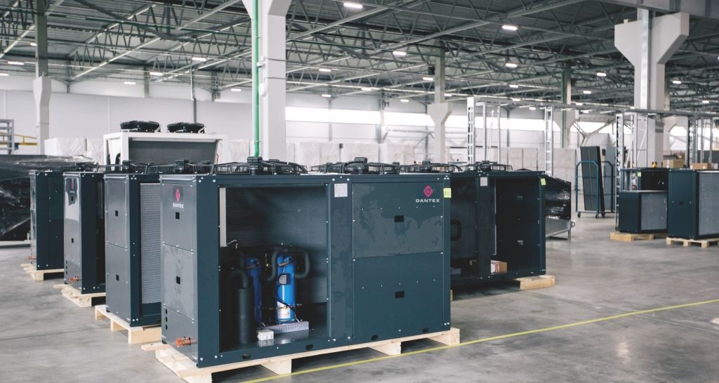 Линия №2. Выпуск климатических моноблочных чиллеров внешней установки (на базе винтовых и спиральных компрессоров), поизводительность до 1.4 МВт, и ККБ (компрессорно-конденсаторные блоков), производительность до 500 кВт. Гидромодуль при моноблочной конструкции чиллера встроен в систему, это позволяет избежать монтажа дополнительных трубопроводов.