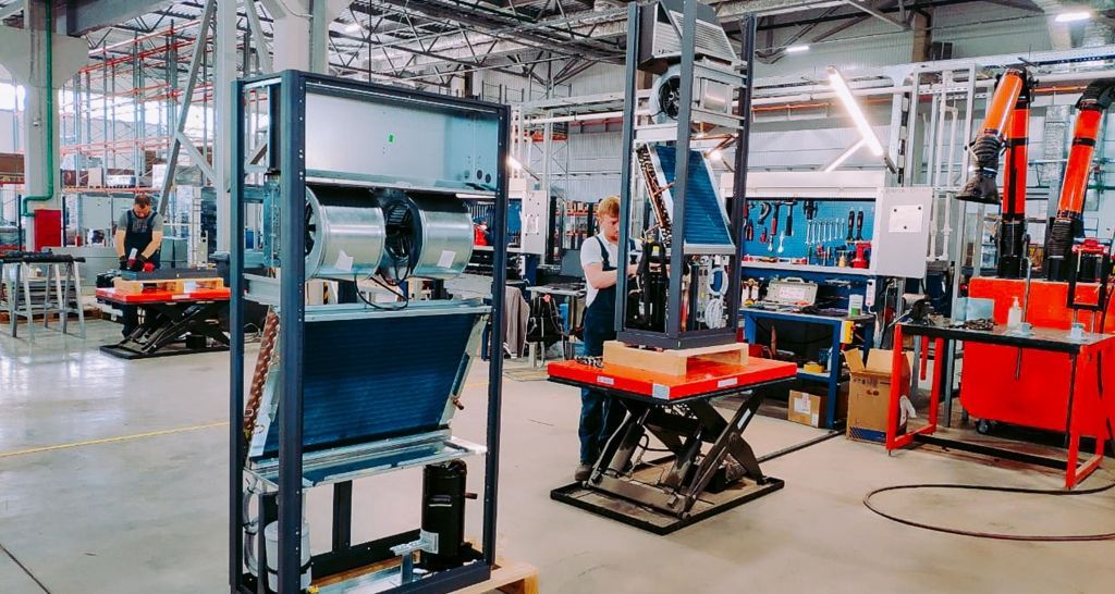 Линия №1. Выпуск прецизионных кондиционеров (шкафных, межрядных и моноблочных для телекома), производительность от 5 до 300 кВт. Предназначены для охлаждения технологических сред с высокой тепловой плотностью, для которых необходим точный контроль температурно-влажностных параметров и непрерывная работа.