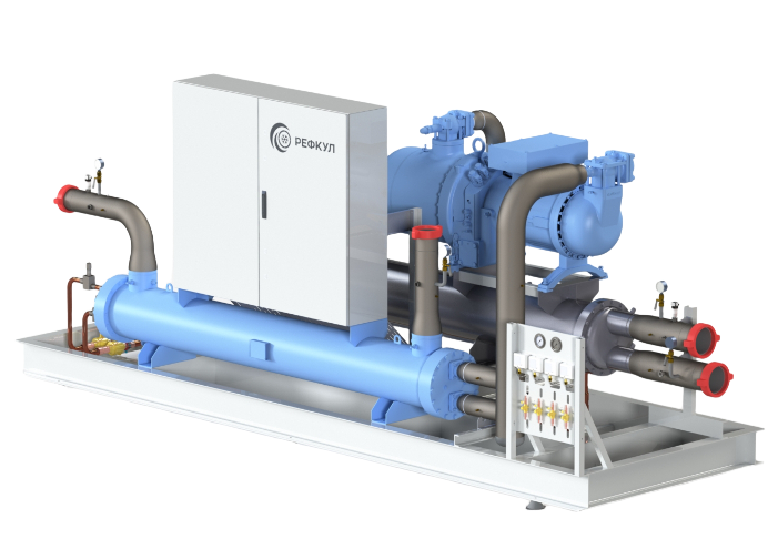 Винтовые компрессоры: устанавливаются по одному в независимом холодильном контуре, для каждого установлен нагреватель картера, электродвигатель оснащен реле защиты от перегрева обмоток и блоком мониторинга с контролем уровня масла.