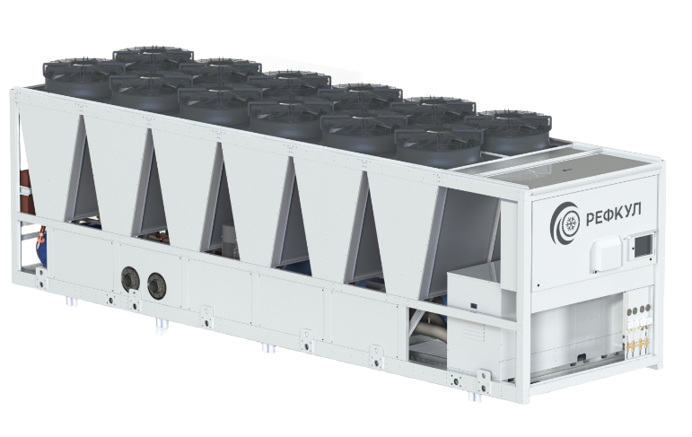 - Встроенный НТК до −10˚С. В составе: ресивер с группой безопасности и запорными кранами, обратный клапан (обратный клапан не применяется для чиллеров с ФК)