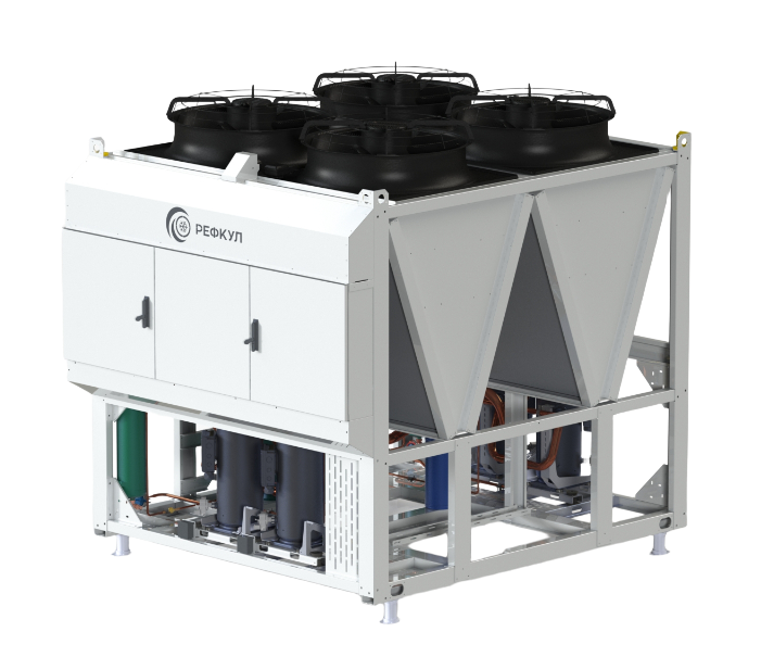 - щит силовой в общем корпусе, размещённом на раме, протокол ModBus, реле контроля фаз и напряжения (обеспечивает защиту компрессоров от обратного чередования фаз и низкого/высокого напряжений);
